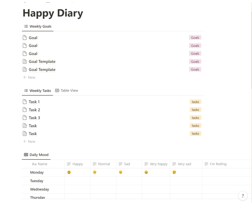 This a Notion Template where you can use to set your weekly goals, tasks, daily mood, and habits tracker.